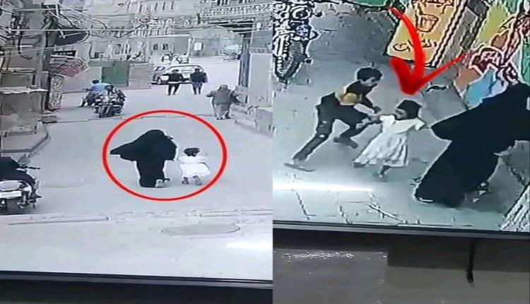 كاميرا مراقبة توثق لحظة بطولية لطفل يمني أنقذ شقيقته من محاولة اختطاف شمال البلاد.